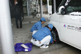 全車両にチェーンを装着し、この日も安全運転で無事に送迎業務を完了しました!(うし(事務))