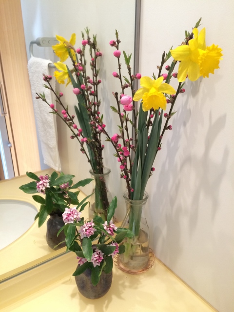 今日は病棟のケアスタッフさんたちが、入院されている患者さんに「プチお花見」のプレゼント。もう少しで満開です!
