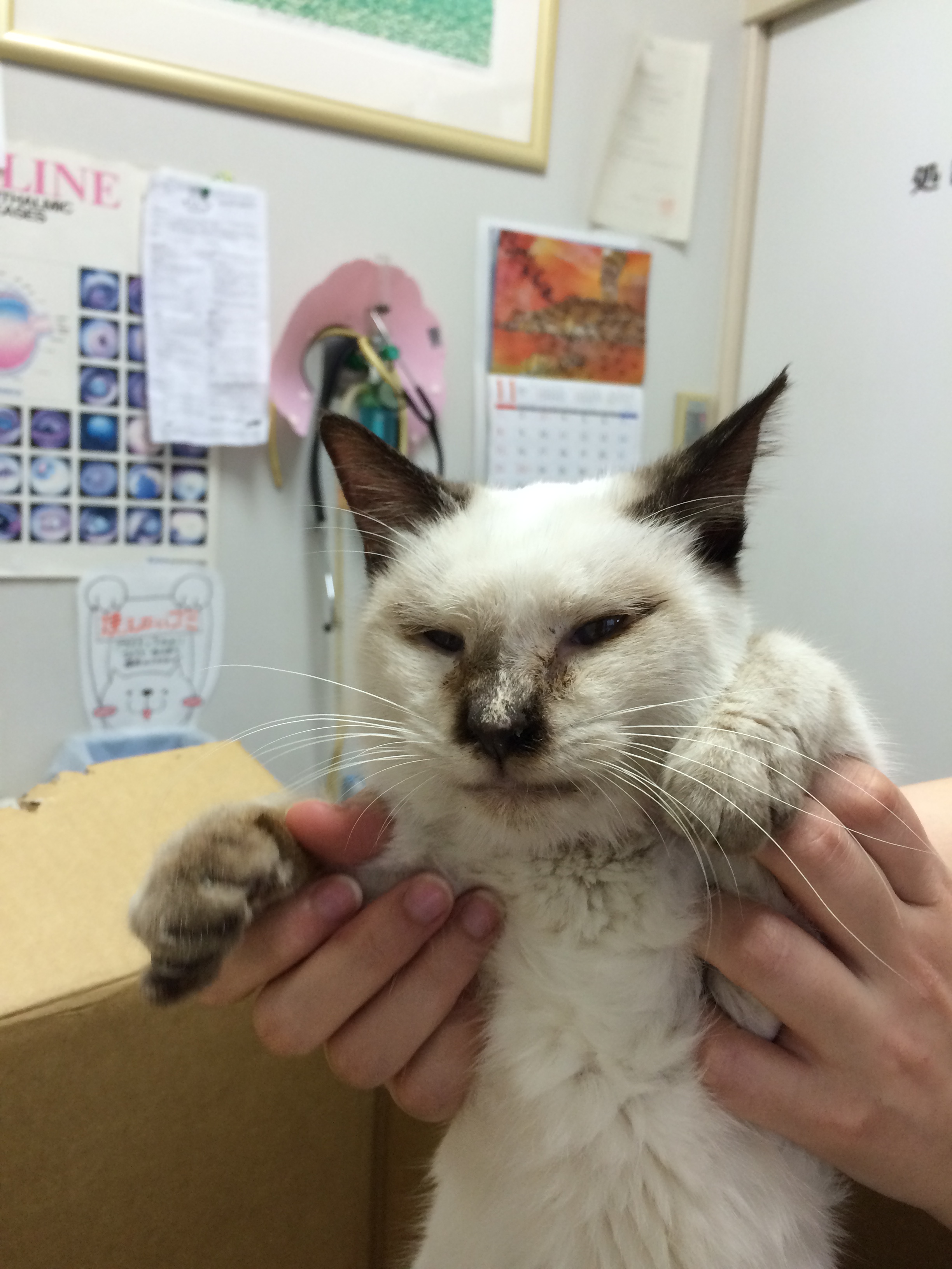 平成27年12月3日(木)16:00 ごろ、上山病院玄関自動ドアより上記写真の猫が迷い込んできました。