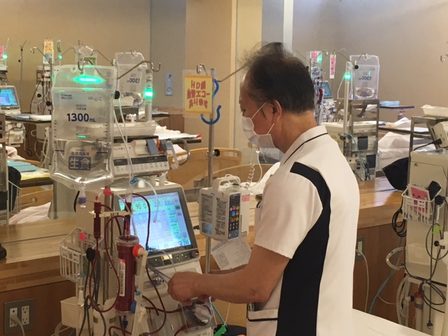 常に患者様に安全な透析ができるよう、朝の機器の始業点検、透析中における機器の運行状態、患者様の状態、終業点検等のチェックに万全を尽くし、機器メンテナンスにも力を入れ、透析が円滑に進んでいくことが私の役目と考えています。