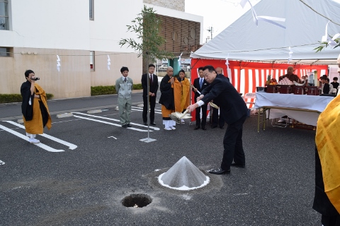 今回、新しい高齢者福祉複合施設、サービス付き高齢者向け住宅「光陽」を上山病院隣に建設することになりました。2月18日に最福寺、池口恵観法主による地鎮祭も執り行われ無事に終了いたしました。設計管理を東条設計様、施工を渡辺組様に担当して頂きます。12月下旬の引き渡しで、来年1月早々に開設予定です。