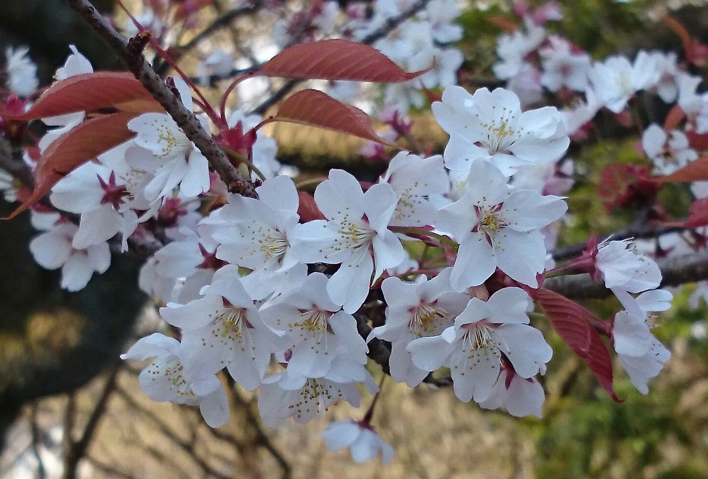 山荘の敷地内にある山桜と梅の花が綺麗に咲いていて、