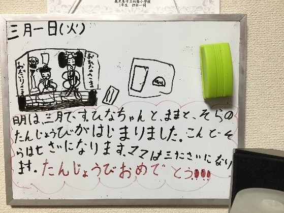 2月の最後の夜、孫が一心不乱にホワイトボードに何か書いていました。