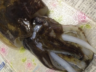 いつもの魚釣りに行きましたらば、イカ釣りの道具でもないのにモンゴウイカが掛かってくれました。