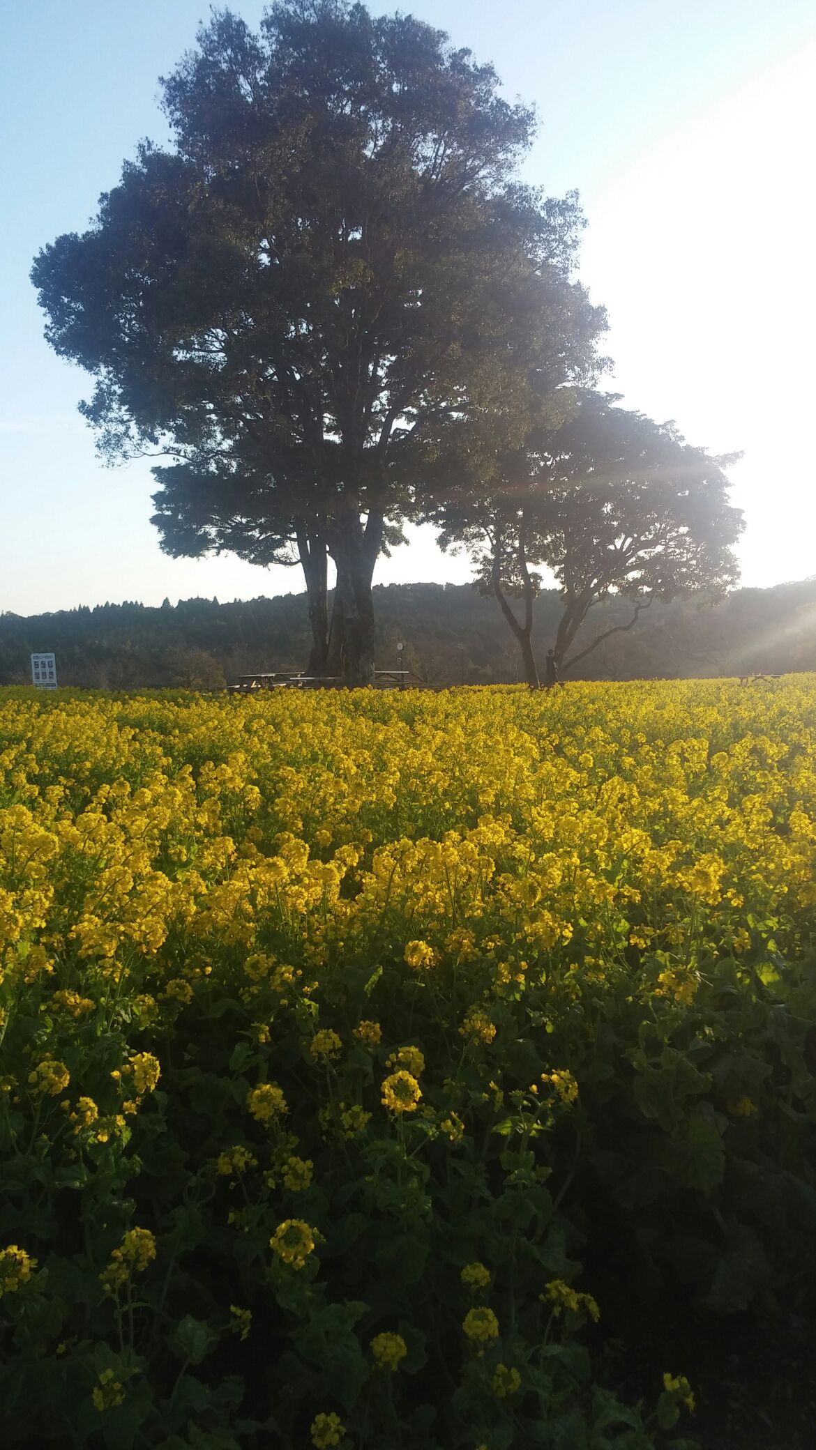 菜の花が満開で綺麗で、桜も咲いていましたよ。