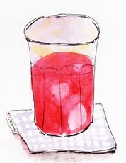 完成後、とっても色鮮やかな紫蘇ジュースと氷をグラスに入れて母に渡しました。
