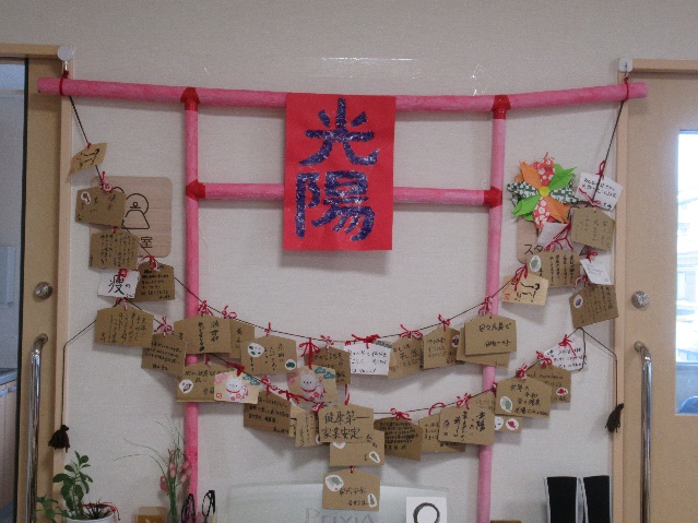 デイサービス光陽では、利用者様にスタッフと一緒に作成した手作り絵馬に願い事を書いていただきました。