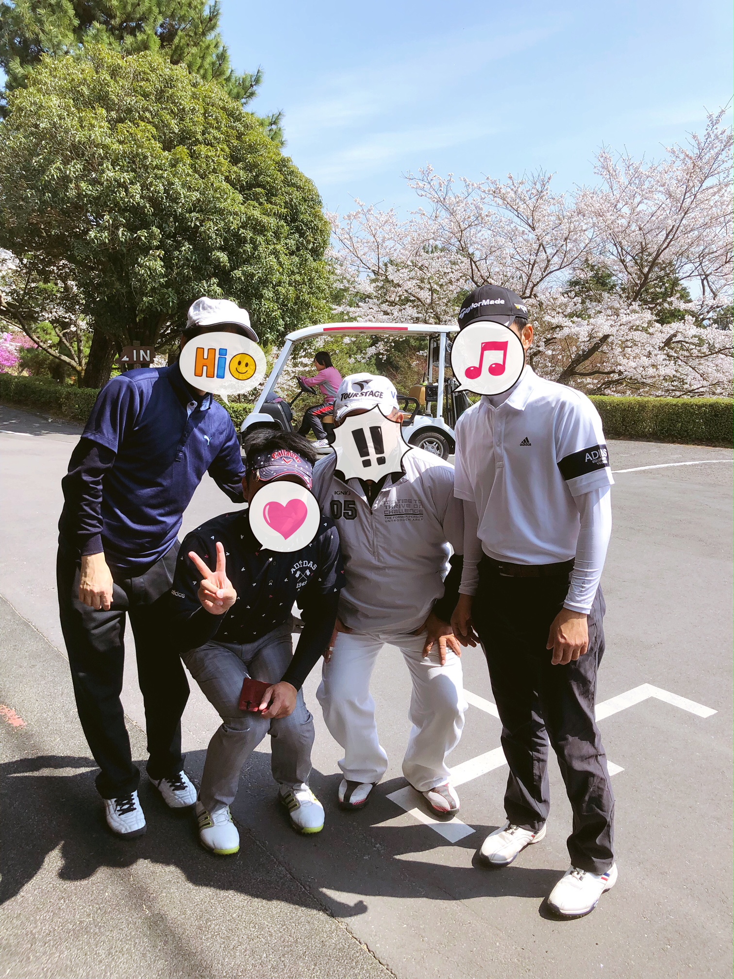 日ごろ大変お世話になっている某銀行の担当者様、某寝具会社の担当者様(お二人とも月1回以上のペースでコースをまわっているそうです)、そして腎愛会での先輩で、私に腎愛会での仕事のいろはを丁寧に教えて下さったKさん(今は他社でお仕事されています)と同じ組(写真1)でした。