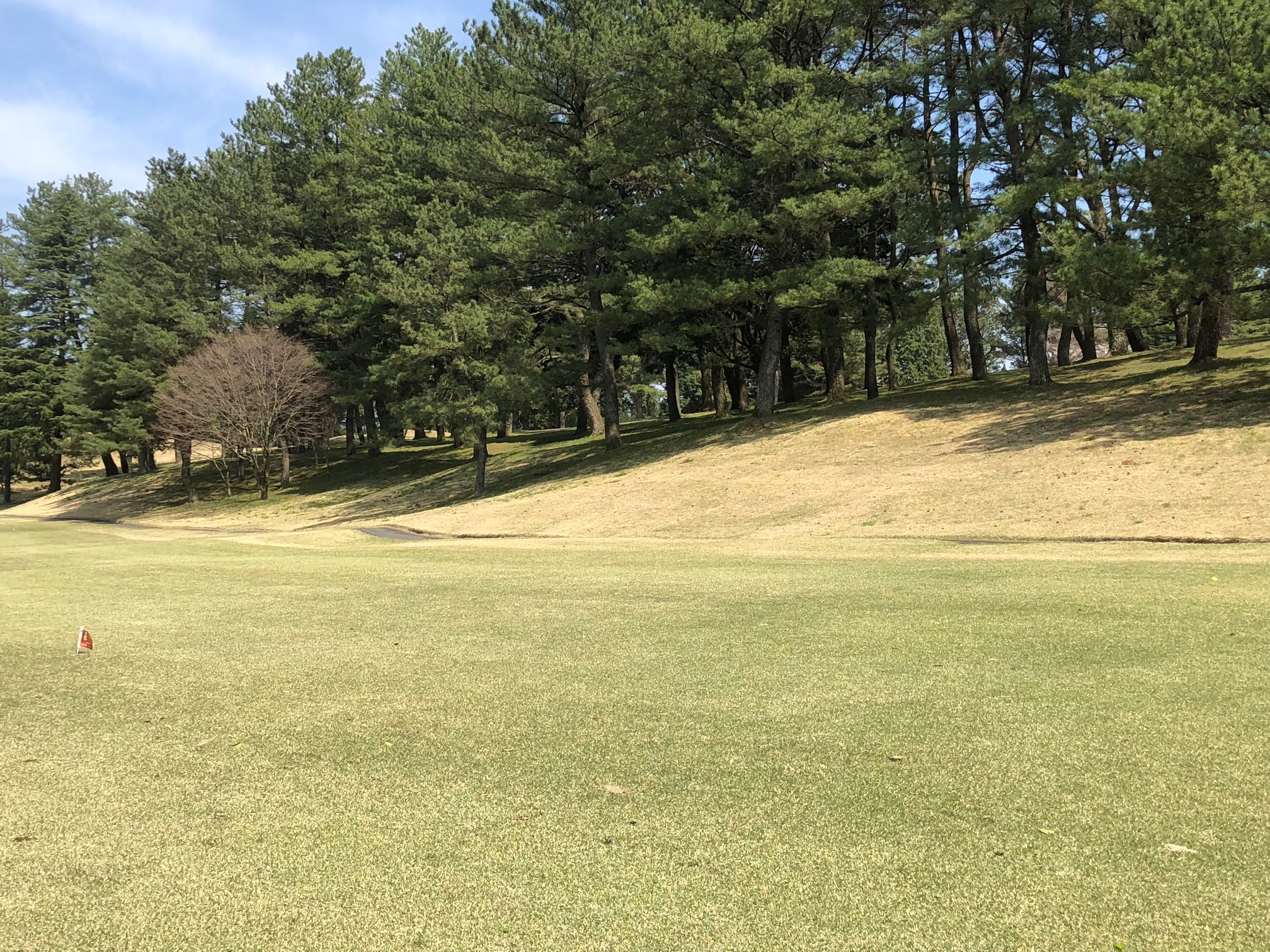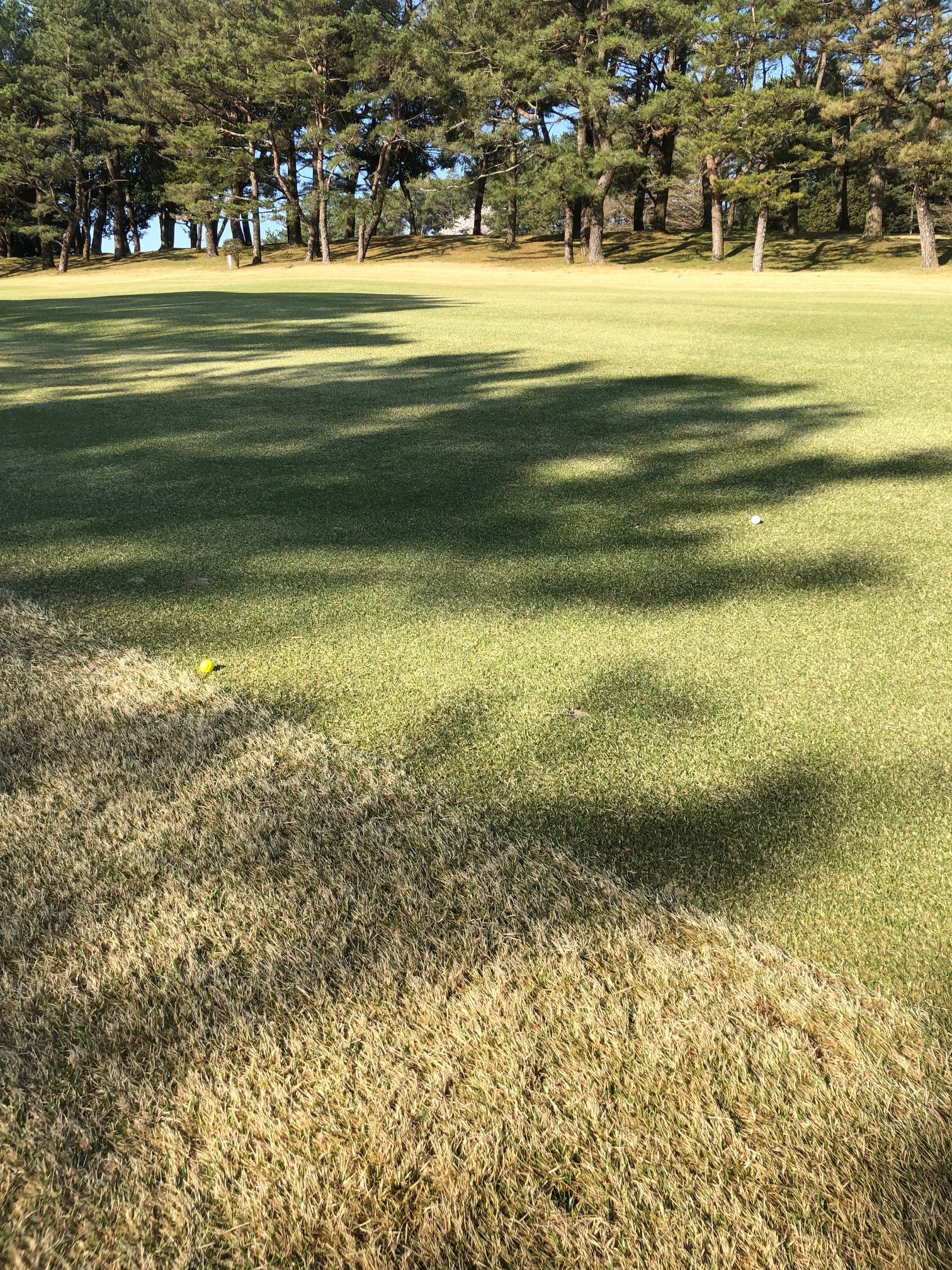 そんなゴルフの達人Kさんにアドバイスいただいたおかげで、ティーショットで1回だけ私の黄色いボールがKさんのボールに並びました。(写真2)