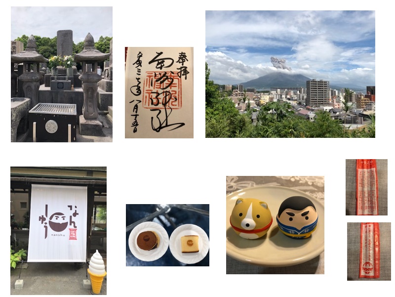 お目当ては「せごどん」と「つん」のおみくじ。焼き物のお人形の中におみくじが入っているんですよ。当病院の事務長が買ってきて見せてくださり、ぜひ買いに行きたいと思っていました。南洲神社の境内の前に南洲茶屋というお店があり、いろいろなせごどんグッズが売っています。運が良ければせごどんの焼き印が押してあるどら焼きとカステラもあります。残念ながらこの日はなかったです。