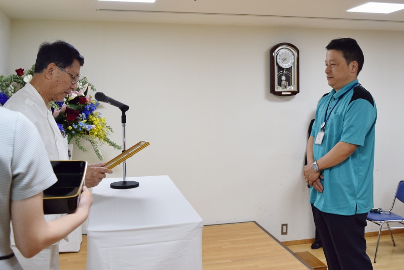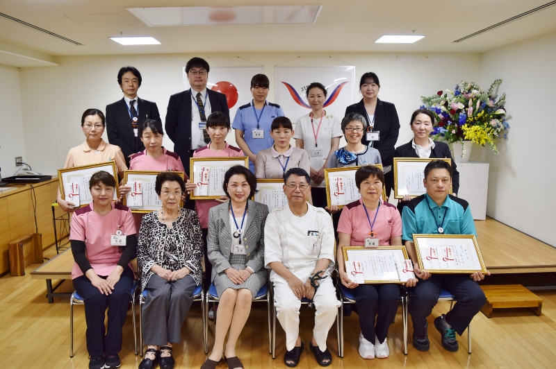 防火訓練、防災訓練等を計画、実行している施設課係長が代表で表彰を受けてきました。