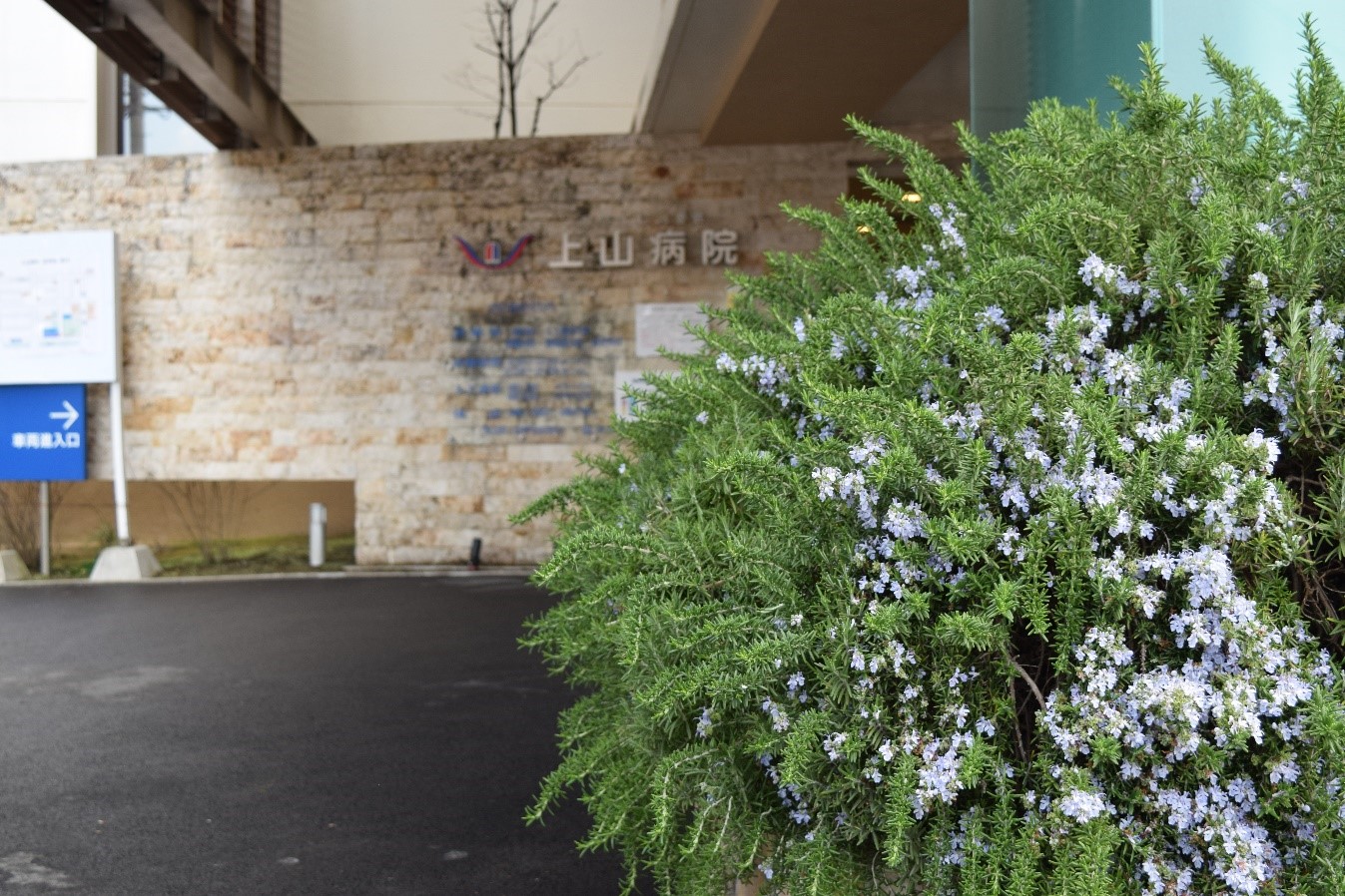 上山病院 玄関先のローズマリーが咲いています。